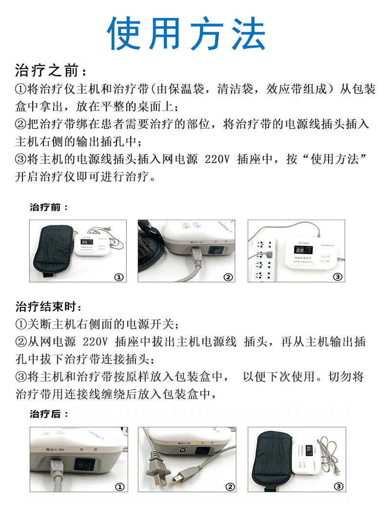 治療帶由效應(yīng)帶、保溫帶和清潔袋三部分組成。