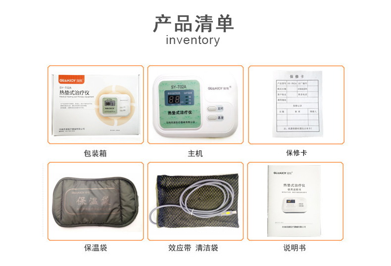 熱墊式治療儀由主機和治療帶(包括效應(yīng)帶、清潔袋和保溫帶)組成。