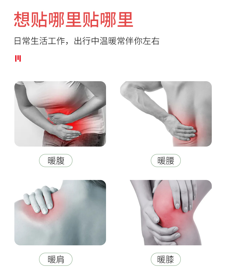 冬天寒冷低溫又到了貼暖寶寶的時候了,貼暖寶寶對腰,肩,胃,腿及關(guān)節(jié)等疼痛均有緩解作用,所以特別適合老年人。在寒冷的冬季外出防止凍傷驅(qū)寒有很好的效果,攜帶方便,發(fā)熱持久穩(wěn)定,每天只要貼上薄薄的一片就能抵御您一天的寒冷。