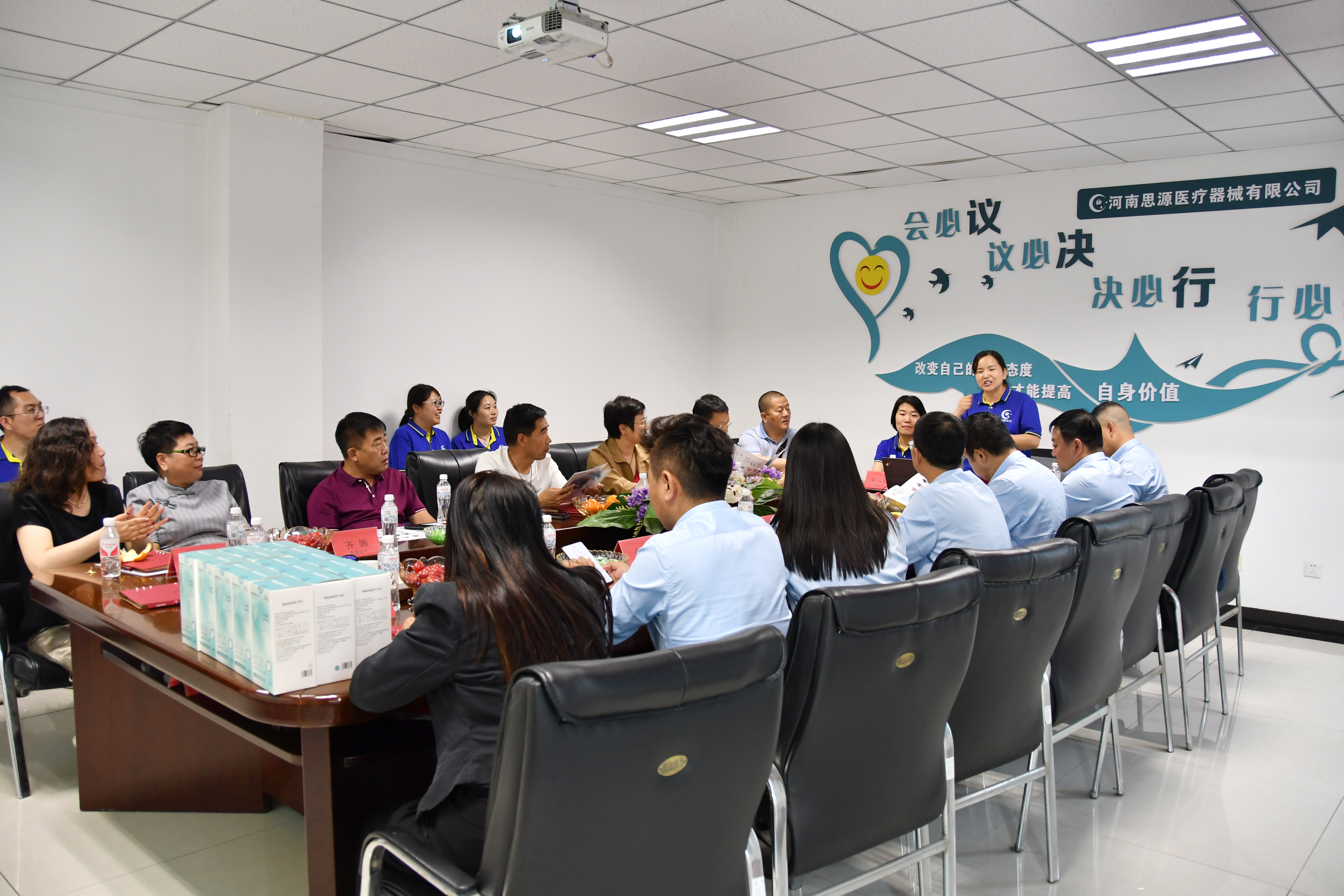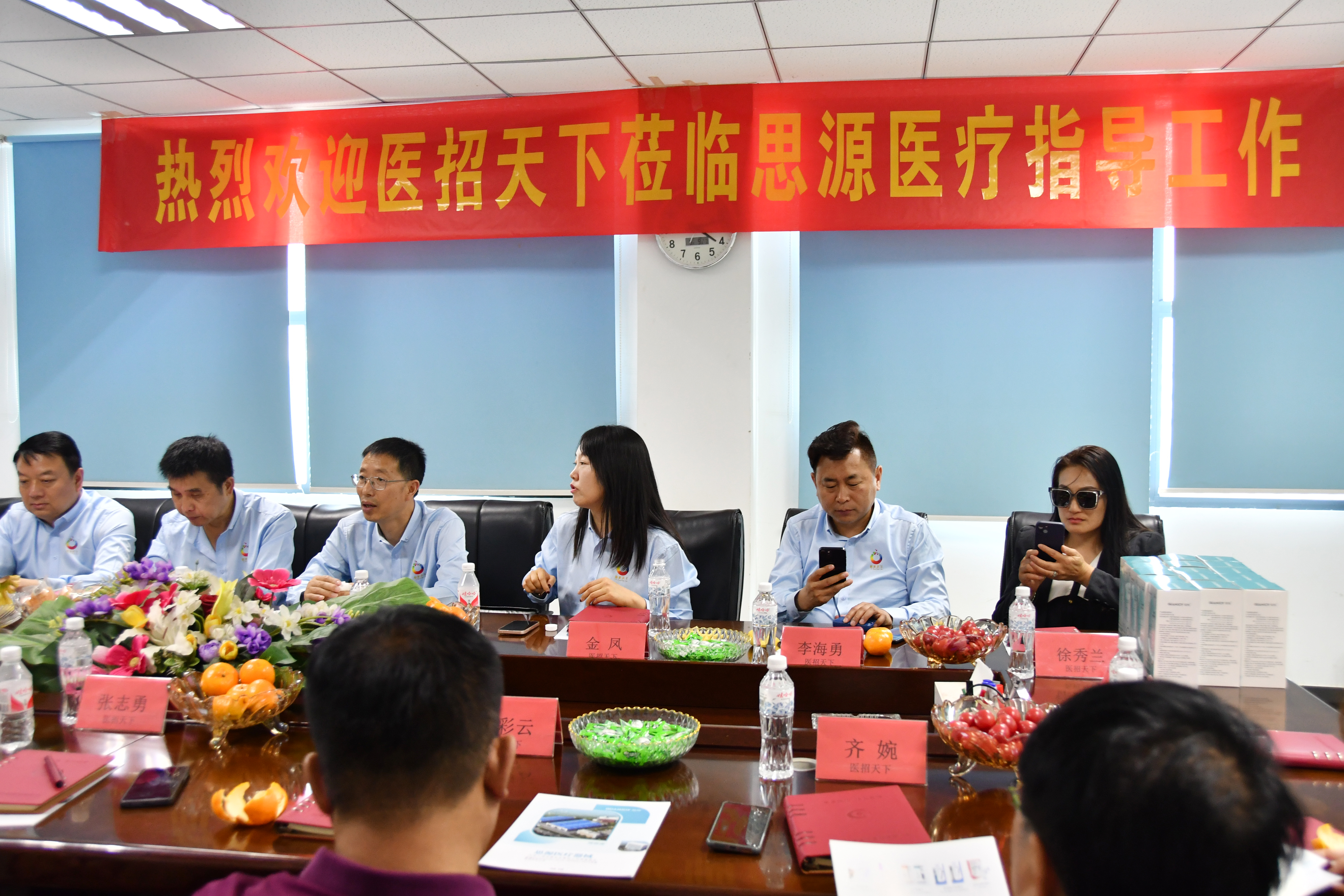 2024年5月9日下午, 醫(yī)招天下聯(lián)合創(chuàng)始人、醫(yī)屆論壇創(chuàng)始人杜金鳳、舜商財(cái)稅集團(tuán)董事長(zhǎng)韓曉博及其團(tuán)隊(duì)伙伴蒞臨我司參觀指導(dǎo)。公司市場(chǎng)部經(jīng)理李慧彩、渠道部經(jīng)理鄭云英、生產(chǎn)部經(jīng)理王敏芳,技術(shù)部經(jīng)理羅成鳳及相關(guān)部門負(fù)責(zé)人陪同調(diào)研。